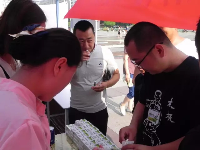 圖為:市民在現(xiàn)場免費品嘗山西同仁康大藥房提供的太極藿香正氣口服液